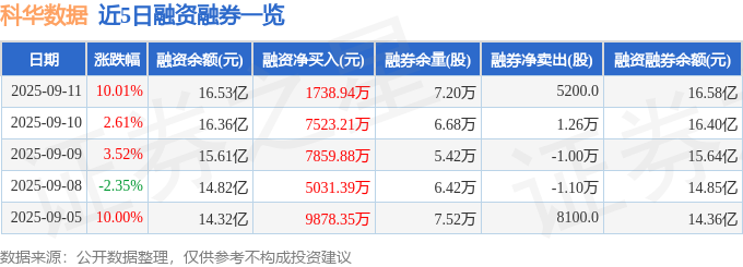 证券之星消息,截至2025年9月11日收盘,科华数据(002335)报收于62.76元,上涨10.01%,涨停,换手率8.9%,成交量40.49万手,成交额24.64亿元。