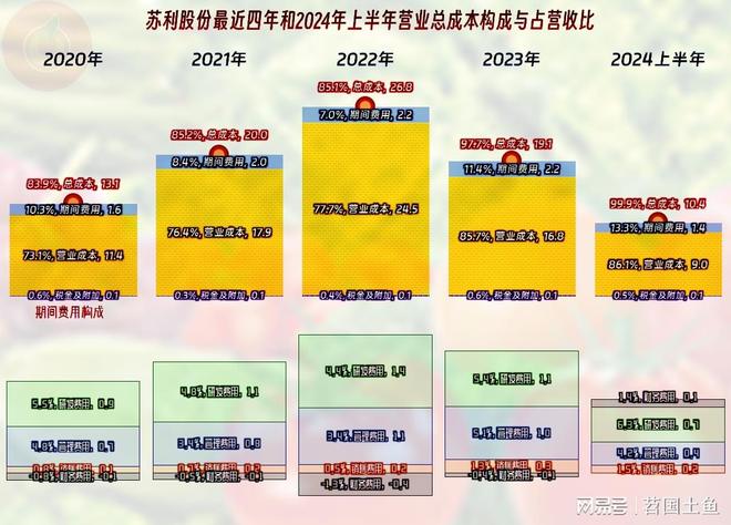 按年度来看,2021年和2022年并没有毛利率的增长,反而处在下降通道中,只是在这两年形成了一个23%左右的平台;不过,随后就是2023年的暴跌,和2024年上半年一起,在14%左右重新来构筑新的平台。从近四成的毛利率平台,到14%的平台,苏利股份只用了四年时间就完成了转换,这样的毛利率暴跌,还能保持不亏,也算是比较“皮实”了。