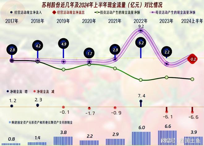 苏利股份“经营活动的净现金流”表现还是不错的,在2024年上半年表现得要相对差一些,出现了小额净流出的情况。在2022年定增近10亿元融资后,最近两年半的固定资产类投资活动明显增强。