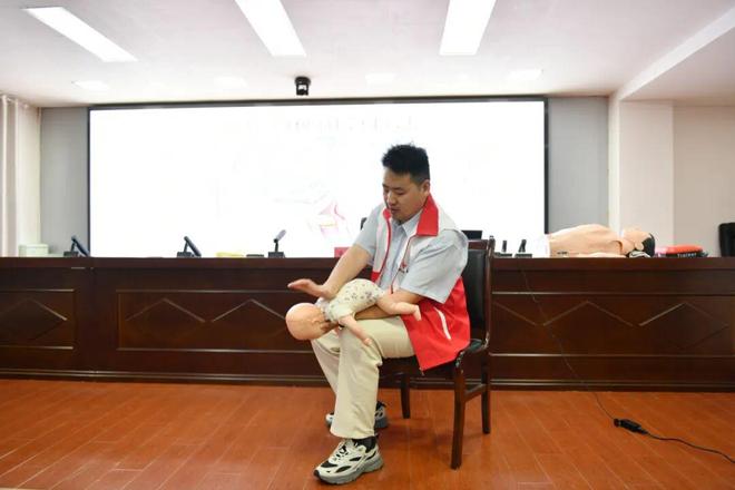 本次培训邀请了经验丰富的红十字应急救护讲师进行现场授课。培训过程中,讲师运用生动形象的案例,详细讲解了CPR+AED运用、气道异物梗阻排除法、意外伤害、突发事件处置、常见急救、防灾避险等知识。